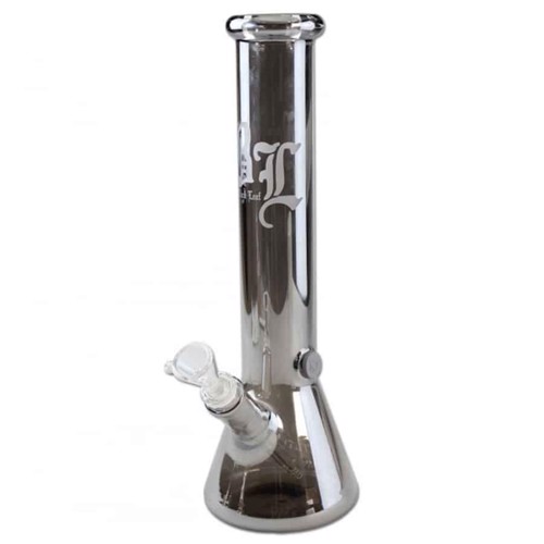 Denna bong är producerad av Black Leaf och är en del av deras Neverland-serie. Den är gjord av massivt 5 mm borosilikatglas i en svart färg, som är extremt värmebeständig, och ger en iriserande färggradient, samt en snygg metallisk look. Den har ett 3- downtube , som ser till att mycket luft och vatten virvlar runt vattenkammaren, och filtreras medan den svalnar. Den har ett glidhål på sidan av bongen, med en avtagbar gummipropp, så du kan själv bestämma om du vill använda denna funktion, eller föredrar att lyfta bonghuvudet med det inbyggda handtaget på sidan av bongen. huvud. Bongen är extremt robust och munstycket är rundat, vilket ger en bekvämare rökupplevelse. Vi rekommenderar att du använder ett 12,5 mm screen för denna bong.