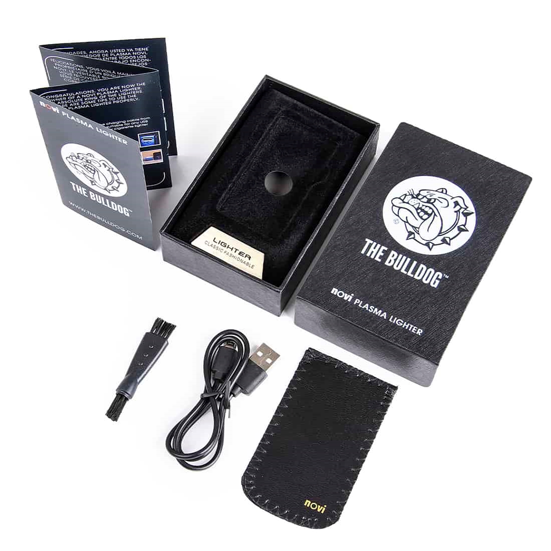 Detta är en elektronisk plasmatändare från Bulldog Amsterdam , som kan användas i alla väder, och kan laddas via den medföljande USB-kabeln. Den innehåller inga giftiga gaser eller kemikalier eftersom den fungerar via elektricitet, vilket gör den till ett hälsosammare alternativ än traditionella butangaständare. Den stora effekten av kraft som kommer när den är tänd kommer utan tvekan att ge den mycket uppmärksamhet från folk som tittar på när du tänder din cigarett. Den kommer i en fin kartong med tillhörande fodral och manual, och detta gör den också till den perfekta presentidén om du vill överraska din rökande vän eller flickvän med något speciellt. Plasmabågen på tändaren har en värme på mer än 500 grader och antänder nästan alla brännbara material nästan omedelbart.